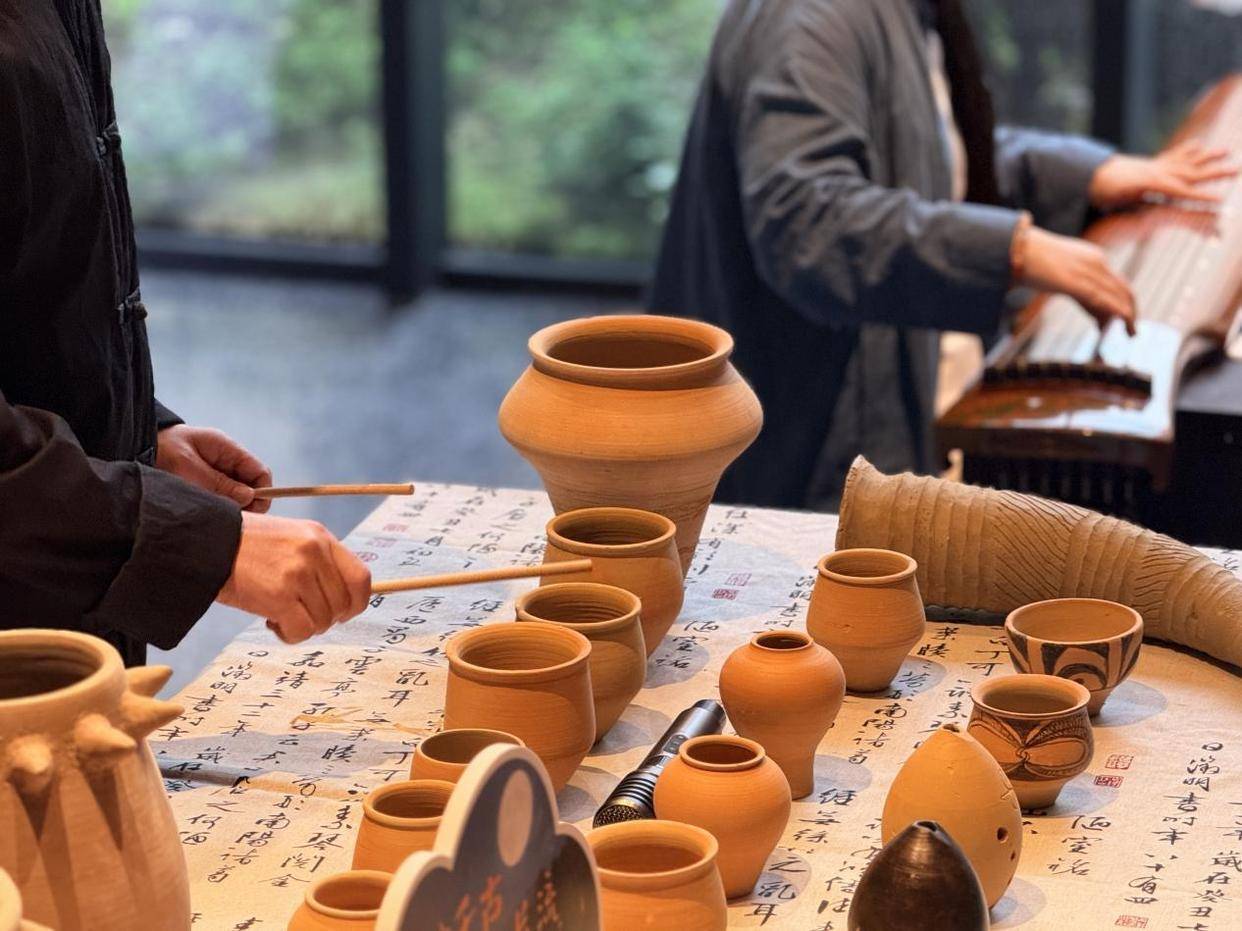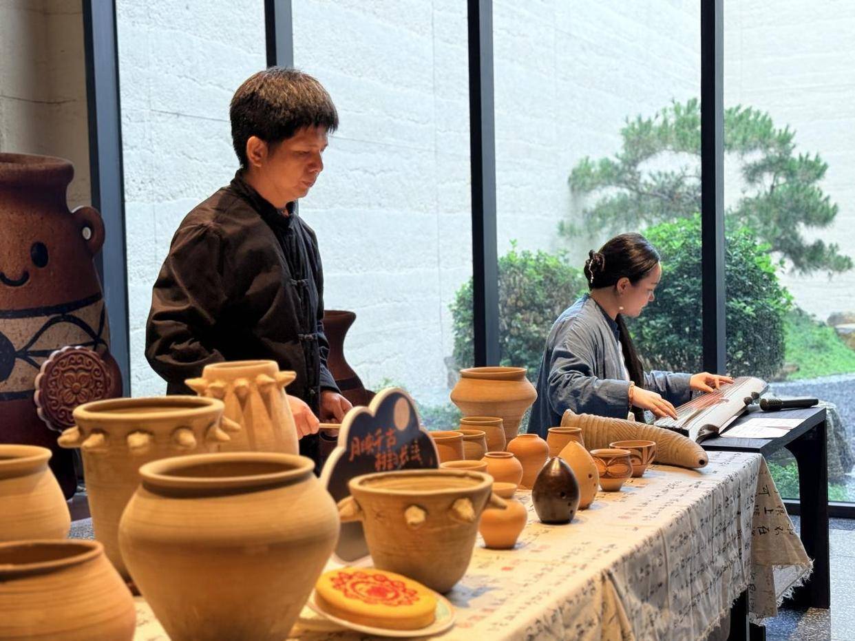 随后,首项环节“聆赏・史前天籁”在博物馆精心布置的研学工坊区上演。特邀专业音乐老师手执复原的史前乐器——陶铃、陶埙等,并融合古琴与笛、箫,奏响了跨越数千年的古老乐章。空灵悠远的埙声、清脆悦耳的铃响,与清越典雅的古琴,婉转悠扬的笛、箫声交织共鸣,形成了一场史前遗韵与古典传统的深情对话。每一个音符都仿佛被赋予了生命,唤醒着深埋于这片土地下的集体记忆。在场嘉宾凝神静听,在旋律的牵引下触摸中华文明源头的脉动与温度,感受那份虽遥远却深刻于血脉之中的文化基因。
